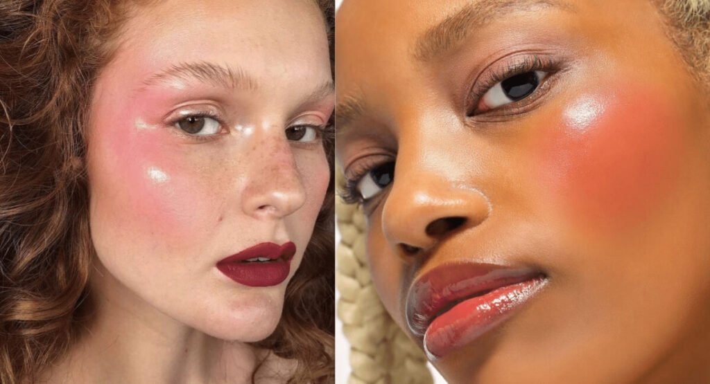 O blush laranja, muitas vezes combinado com o “sunset blush”, é a aposta para bochechas radiantes. Esse estilo, que mistura laranja, rosa e iluminador, cria um degradê inspirado no pôr do sol.